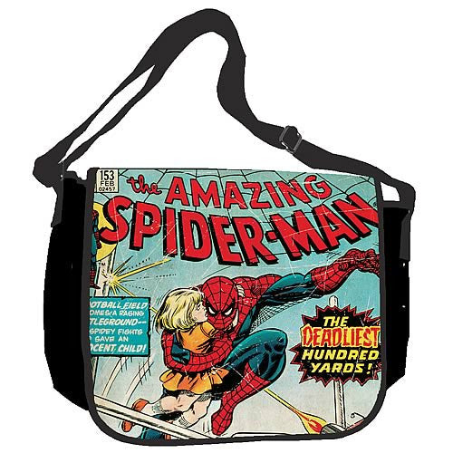 Spidey fans will easily recognize the comic book cover image on this Amazing Spiderman messenger bag is taken from the memorable issue #153 called The Longest Hundred Yards (see additional image) from 1976. Enjoy this vintage-styled messenger bag wherever you go to hold your superhero stuff.