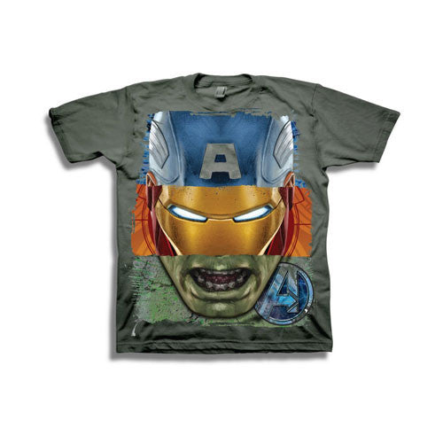 Combine the faces of Captain America, Iron Man and The Hulk on a t-shirt and you've got Captain Iron Hulk! Kids will love this fun design. This shirt is also available on our website in men's sizes.