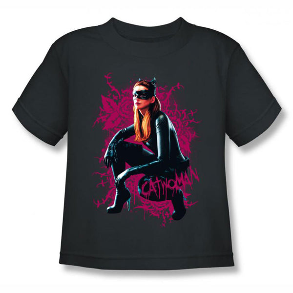 From the Dark Knight Rises movie, your young Batman fan will dig this Catwoman Roses t-shirt. Great for girls to wear, showing off their, well...Girl Power.