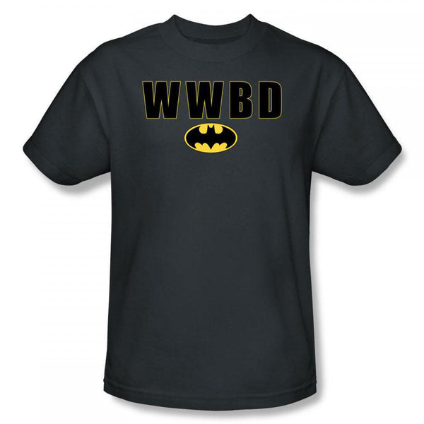 Whenever you're in a tough spot, it's always good to ask yourself, What Would Batman Do? And with this shirt, you'll have that reminder with the initials to this saying, WWBD. Available in Mens sizes.