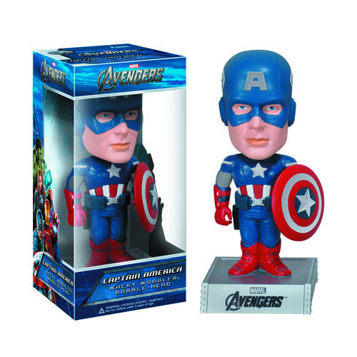 - Avengers fan will go Wacky over this Captain America Avengers Wacky Wobbler Bobble Head. It is highly detailed to show the upgrade of Steve Rogers new Captain America suit. Makes a great birthday gift and will make heads turn if you bring one of these to the office.
