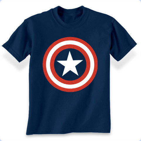 This classic red, white and blue tee is stark, nay beautiful, in its simplicity. Show your allegiance to the First Avenger, and protect yourself against those slanderous charges of treason.