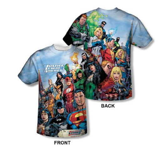 Straight out of the pages of the New 52 DC Comics are the superheroes from Justice League Of America, one of the most successful of the New 52 thanks to the already-legendary work of Jim Lee. Enjoy this amazing 2-sided (or just the front, if you prefer) collection of DC superheroes on one dye sublimation shirt. Dye what? Read on.