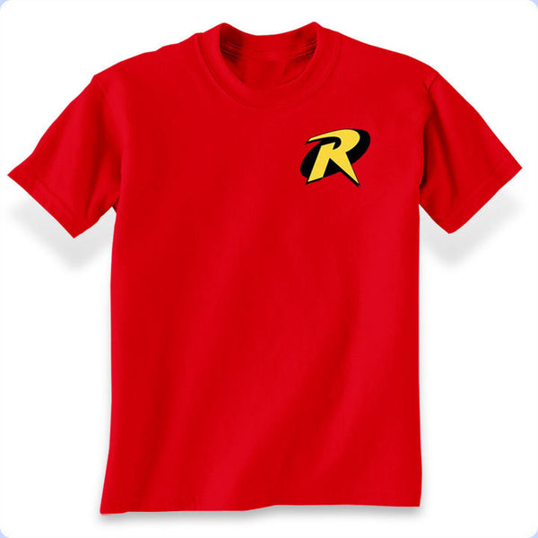 Kids love being sidekicks for older brothers, even if that means being the Boy Wonder by wearing this awesome classic Robin logo t-shirt. Available in sizes 2T through Youth XL.