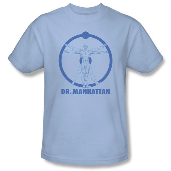 It's hard for Watchmen fans not to have a soft spot for the omnipotent (and blue, literally) Dr Manhattan. Available on a light blue shirt in mens sizes.
