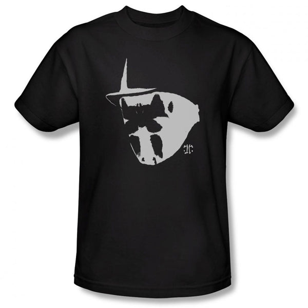 You don't want to miss this Watchmen Rorschach t-shirt that portrays his masked head and hat and his Rorschach symbol located below his jawline in the t-shirt.