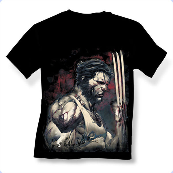 Awesome image of Wolverine and his Adamantium-coated retractable claws. We wish his slogan appeared on the back of this shirt: "I'm the best there is at what I do, but what I do best isn't very nice."