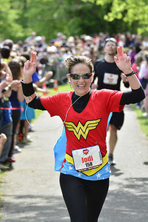 Now you can come as close to looking like Wonder Woman without wearing a costume. This v-neck juniors-style womens t-shirt is fan-tastic for comic cons, parties, Halloween and for running events. Remember to get a pair of our Wonder Woman socks with capes to go with this shirt.